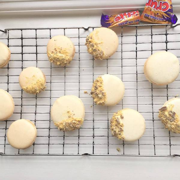 White Chocolate + Crunchie Macarons